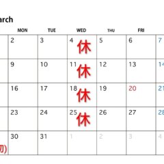 2月のお休みをお知らせ致します。